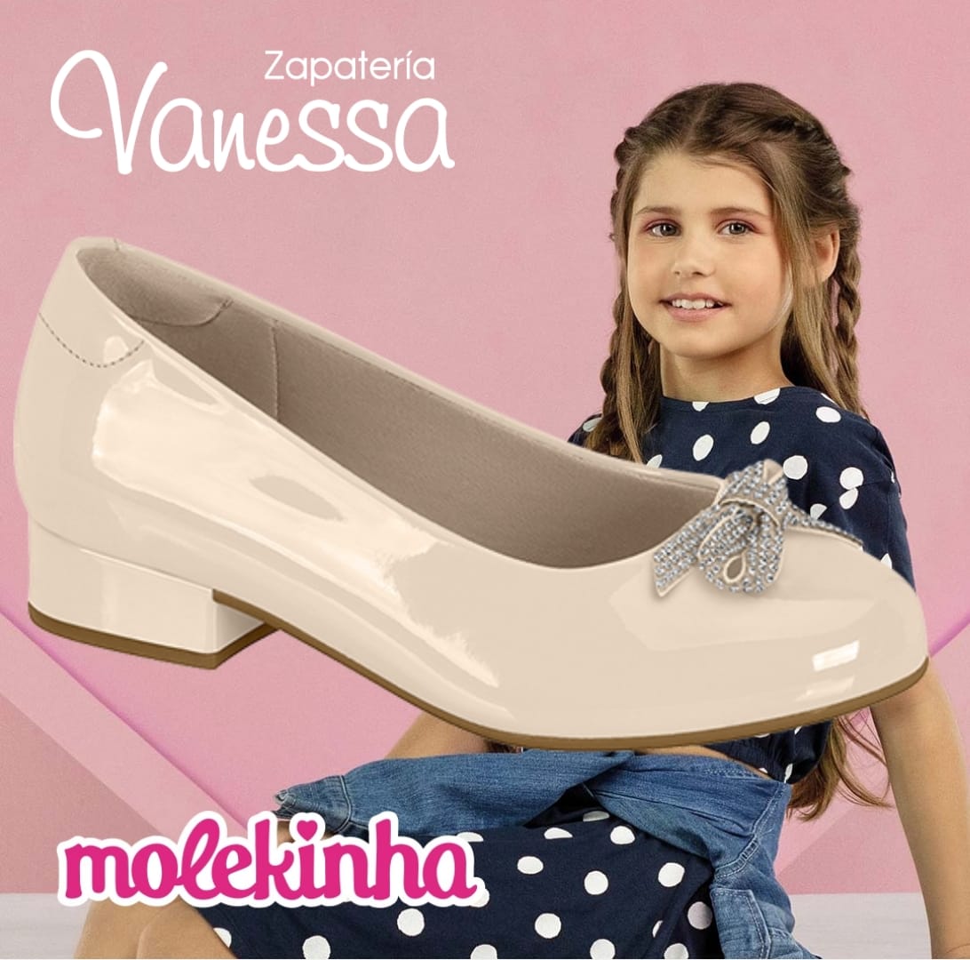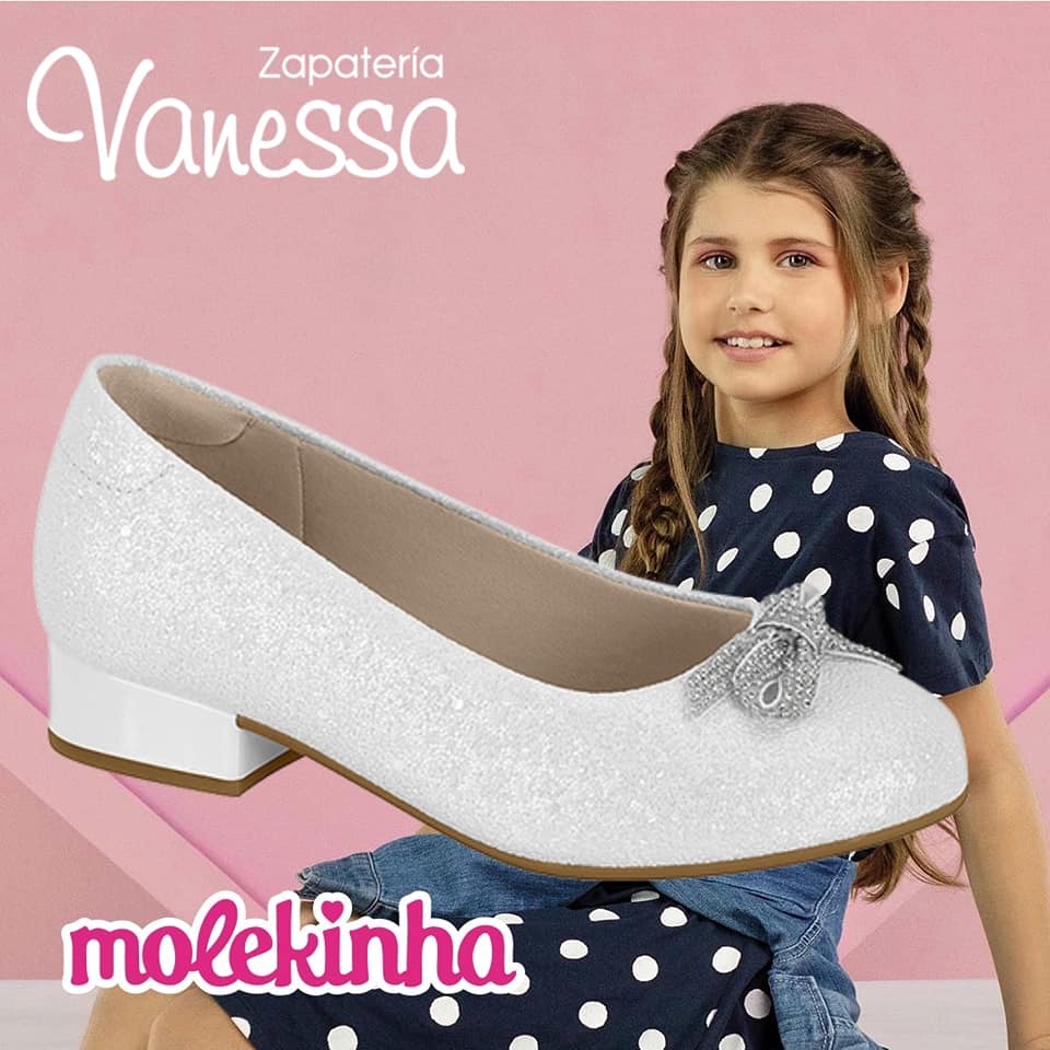 Zapato MOLEKINHA, con una altura del tacón de 2 cm, su plantilla confortable le dará mayor comodidad a los pies de tu princesa, aparte cuenta con forro antibacteriano para evitar malos olores